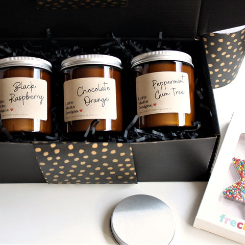 XMAS CHOCOLATE LOVER Custom Hamper | PERSONALISED | Soy Candle & Chocolate Gift Pack | BLACK | Christmas