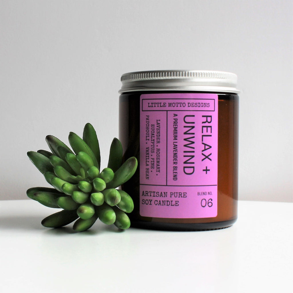 Artisan Soy Candle | RELAX & UNWIND | Amber Glass Jar | Everyday Brights | Fragranced Candle